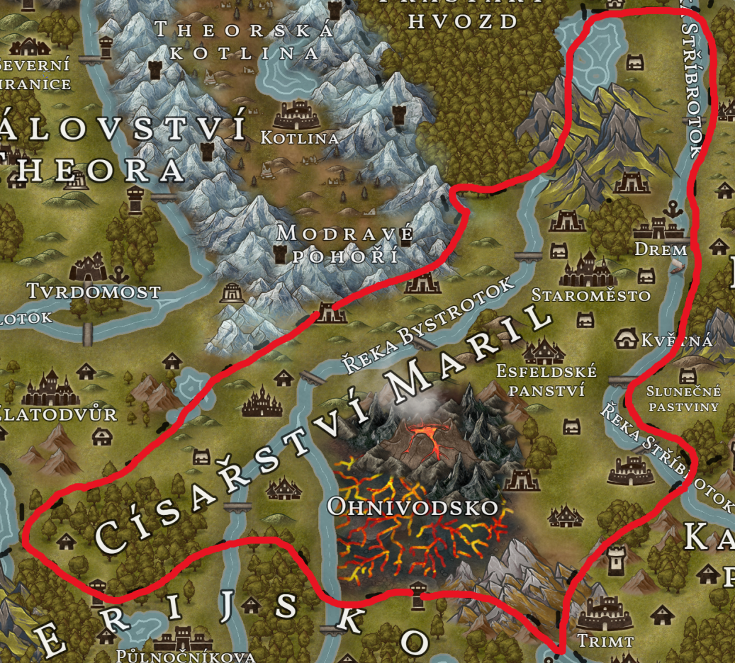 Důležitým vodním zdrojem je řeka Bystrotok. Její tok se uprostřed říše rozděluje na dvě větve. Východní část se nazývá Ohnivodsko, což je název odvozený od místních vulkanických polí ležících pod částečně vyhaslou sopkou. Odtud magma pomalu vtéká až do řeky. Jakmile utuhne, marilští ho z vody těží a zpracovávají.