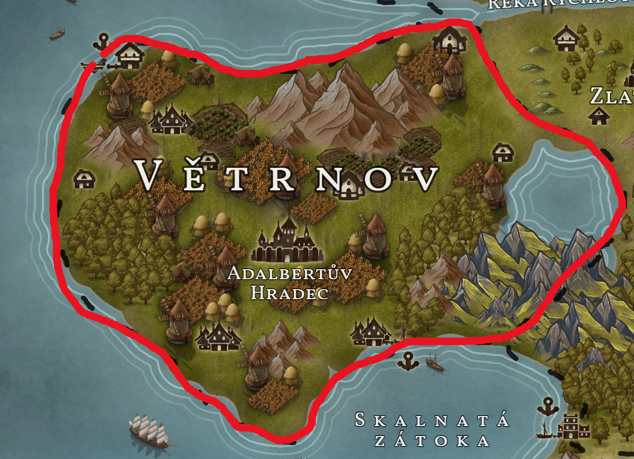 Větrnov je spíše než zemí, společenstvím lidí, kterému na určité úrovni vládne volená osobnost, známá jako starosta. Tato země je stále živým dědictvím z dob Velké války, kdy byla ratradonskými rebely odtržena od území Theorského království.