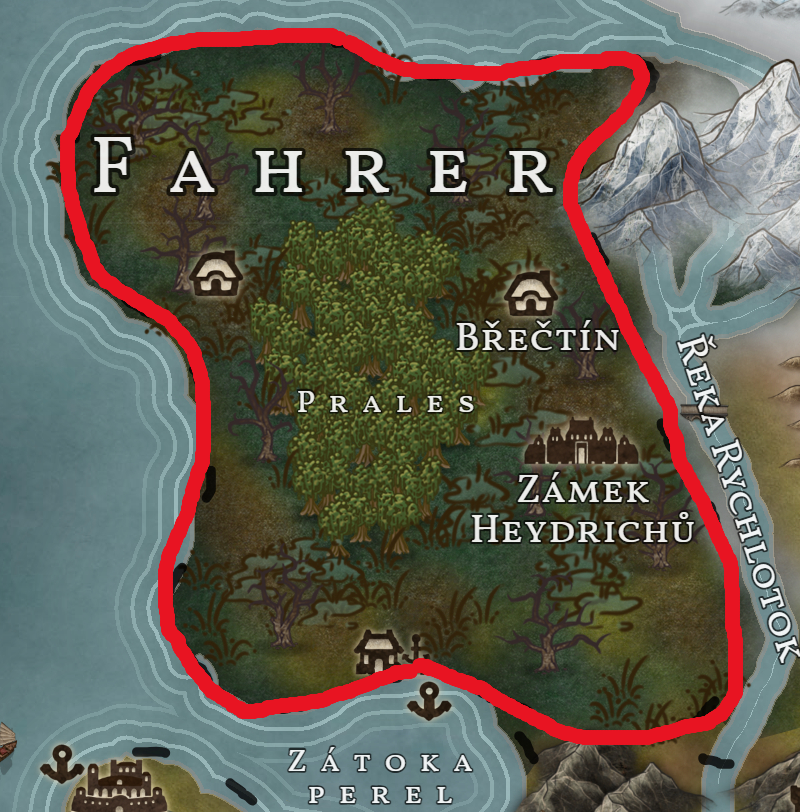 Opomíjená země, kde panuje od dávných časů temnota. Převážná většina jeho území je pokryta močály. Uprostřed této země se rozkládá Fahrerský hvozd, přesněji prales. Podoba Fahreru zůstává neměnná a jeho zlověstný vzhled možná vypovídá o zásahu Zla ještě před jeho uvězněním ostatními bohy.